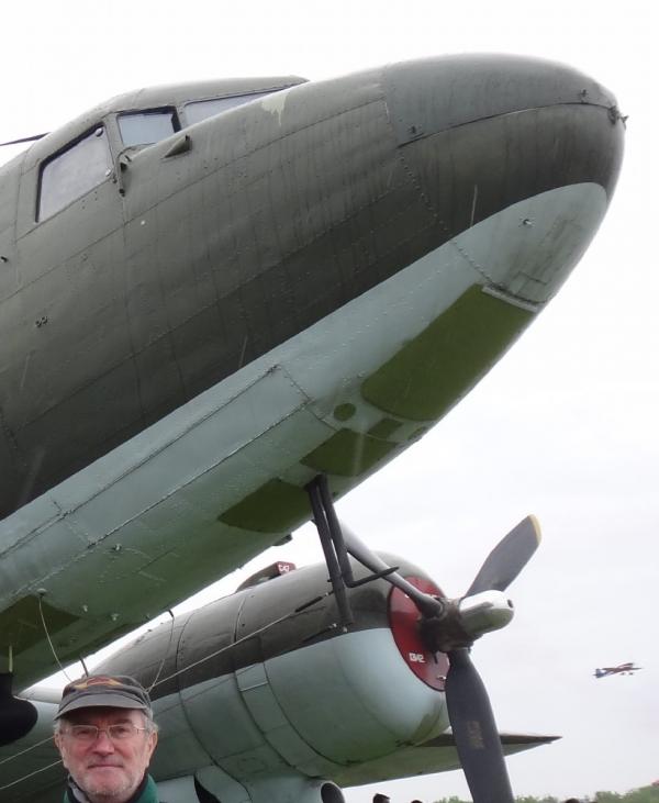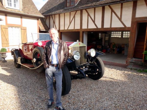 Devant la Rolls Phantom (1929) du couple Britannique qui partage notre chambre d’hôte (St Denis le Ferment, Eure, 12 août 2013).