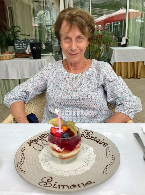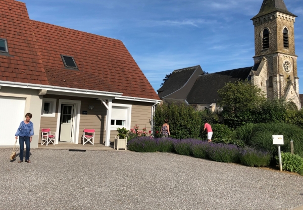 Simone devant notre chambre d’hôtes « Villa-Belle » à Belle et Houllefort dans le Pas de Calais (4 juillet 2019).