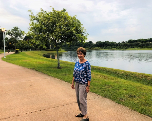 Serge et Simone devant la piscine qui est au sommet de notre hôtel « Casa del Rio » à Melacca (juillet 2020).