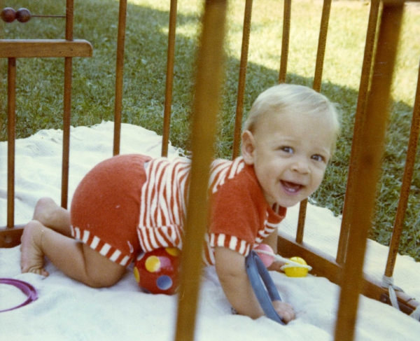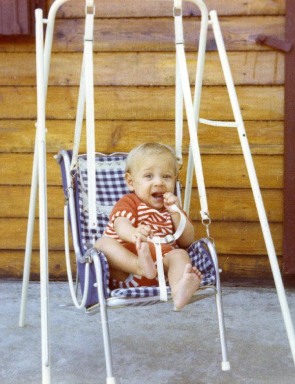Nicolas (2 ans et demi) et Jean-Yves (5 ans) dans notre jardin à Ansdell en rentrant de l’école (hiver 1976).