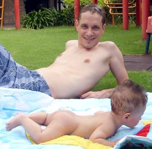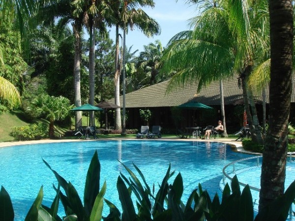 Jean-Yves se relaxe pres de la piscine de sa residence (Cyberview Gardens, Cyberjaya, Malaisie, mars 2008).