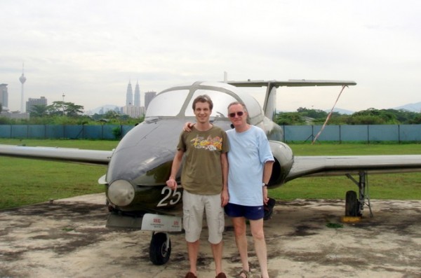 Jean-Yves et son père devant un ancien avion d’entrainement (d’origine Canadien) de la Malaysian Air Force (Musée de KL, 27 juillet 2008).