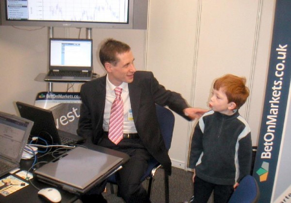 Jean-Yves et Julien au stand de BetOnMarkets (salon « Invest06 », Business Design Centre, Islington, Février 2006)