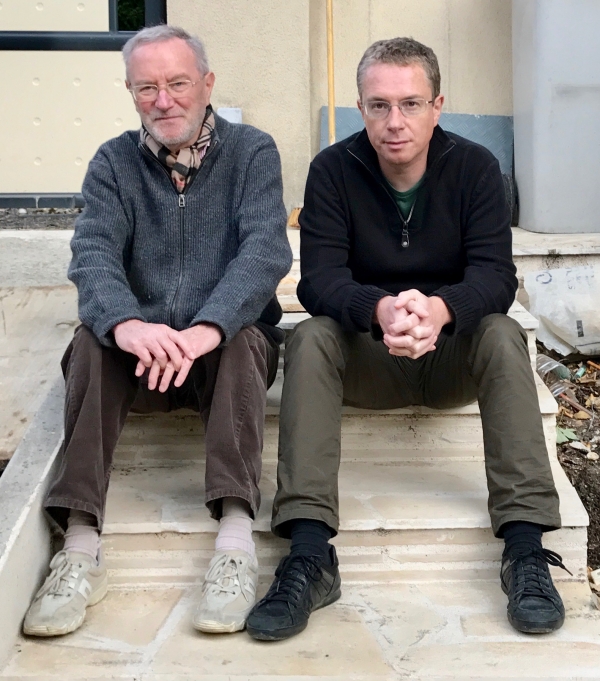 Lors du tournage du film « La petite bande » en 1982. Nicolas en pantalon rouge et Stéphane avec des bottes noires.