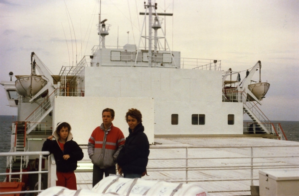 Sur le ferryboat (Malmö en Suède –> Rostock en Allemagne), de retour de Norvège dans le camping-car, à l’été 1986.