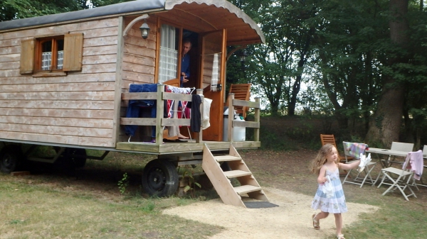 La roulote dans laquelle logeaient Stéphane, Caroline, Joséphine et Eléonore à l’Ecurie du Marais (Marais Poitevin, 4 août 2017).