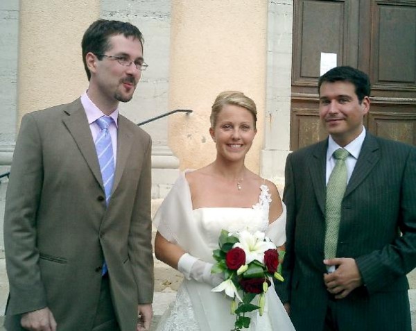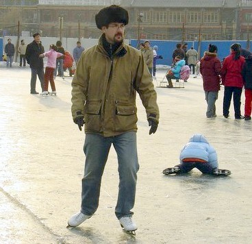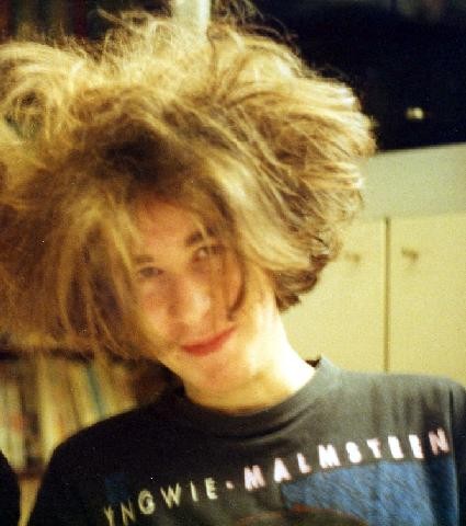 Stéphane à la foire d’électronique de Hong Kong, en 2005, avec un vaporisateur d’eau aux oreilles de lapin
