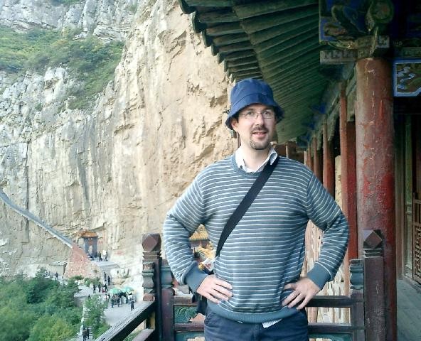 Stéphane en Chine, photo prise dans le monastère suspendu près de la ville de Datong dans le Shan’Xi.