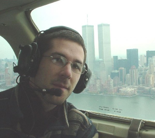 Stéphane en Cessna (avec Ron et Serge) au dessus de l’Hudson River près des tours jumelles (NEW YORK, NOVEMBRE 2000)