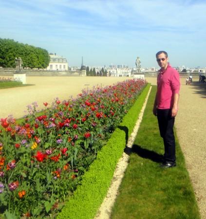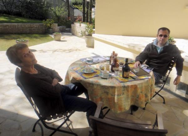 Stéphane à l’arrière de notre immeuble du 45 rue des Chapelles à Sèvres (là où nous avons vécu – jeunes mariés – en 1970, 71 & 72). Notre appartement est celui du rez-de-chaussée juste derrière Stéphane (photo prise à la mi-avril 2011).
