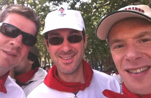 Thomas, Stéphane et Nicolas à Pampelune pour « l’enterrement de la vie de garçon » de Stéphane en juillet 2012.