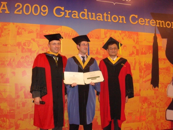 Stéphane reçoit son diplôme de l’Université « Tsinghua », la plus prestigieuse de Chine (Pékin, 19 janvier 2009).