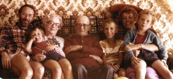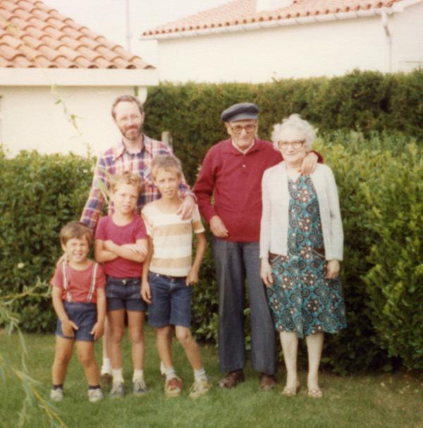 A l’Aiguillon-sur-mer en 1979 : Serge, Stéphane, Mamie (Hélène Renée Sireau), Papy (Ludovic Léon Gabriel Sireau), Jean-Yves, Simone, Nicolas.