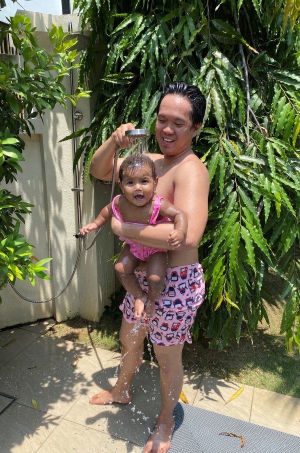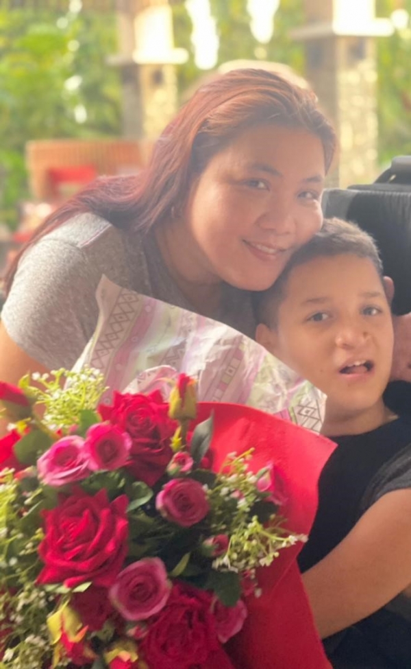 Mei Ling et Simone devant notre maison (164) avec la nouvelle voiture électrique de Mai Ling (14 décembre 2020).