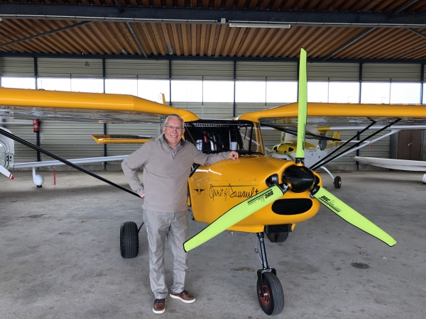 A l’aéro-club Dassault à Chavenay, Eddy devant notre nouveau G1 qu’il a ramené de Gap (7 septembre 2019).