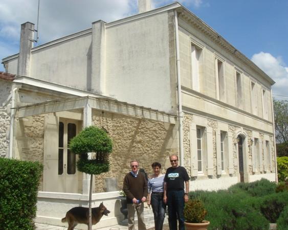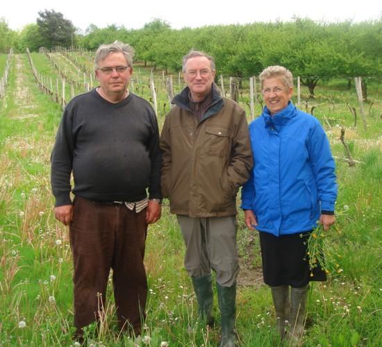 Paul, Serge et Juliana devant les vignes du « Château Lavanau » (Loubès Bernac, Lot et Garonne, 29 avril 2009).