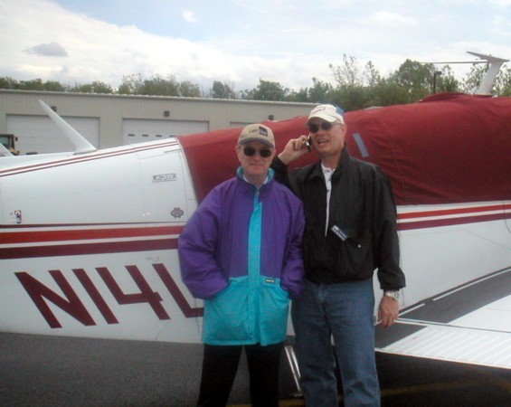 Avec Ron, devant son avion (Bonanza) avant un vol au terrain de Warwick pour un rassemblement aérien (New Jersey, juin 2006).