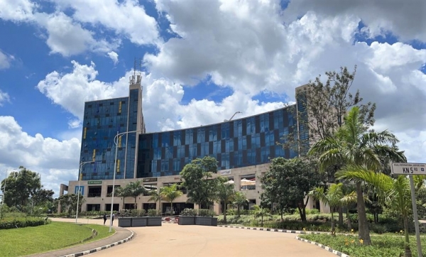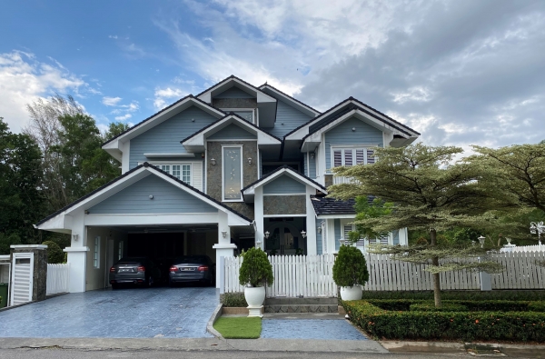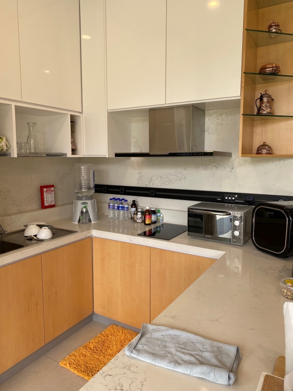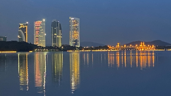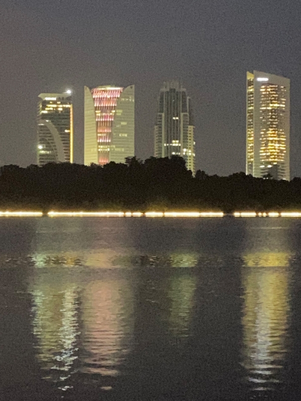 Réflection des immeubles des fonctionnaires sur la lac de Putrajaya, le soir en rentrant de promenade à vélo avec Sylvain (9 juin 2021).