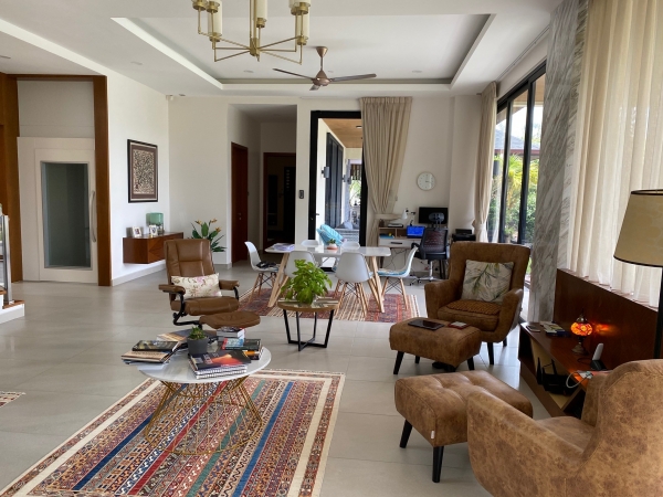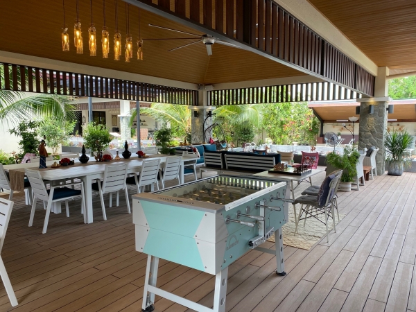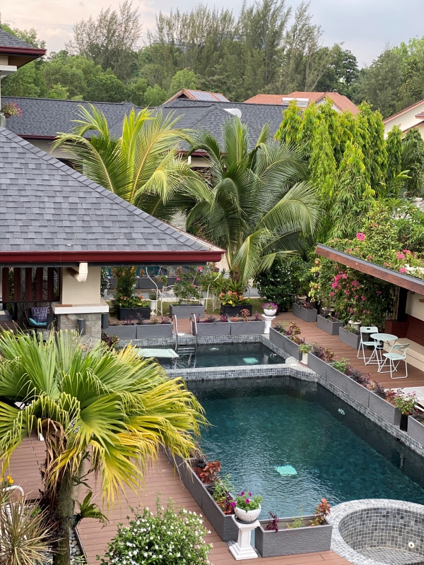 Vue de ma chambre sur la piscine chaude, le grand jacuzzi et le bain froid (Cyberjaya n° 164, 09 04 21