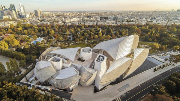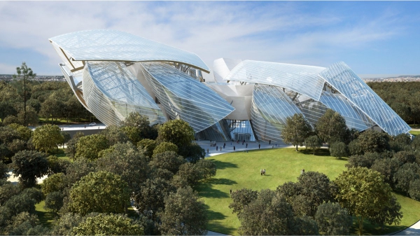 Vue générale de la Fondation Vuitton pour l’Art Contemporain depuis le jardin d’acclimatation (28 mars 2015).