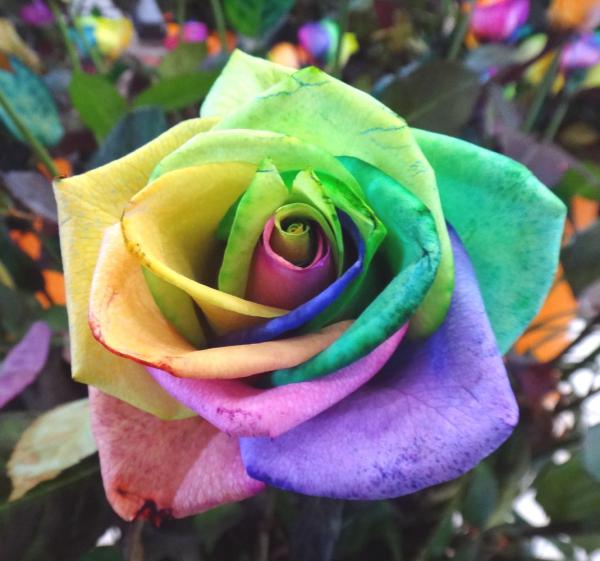 Rose multicolore (photo prises dans une serre du parc floral du Keukenhof près d’Amsterdam, le 11 avril 2014, le jour des 72 ans de Serge !).