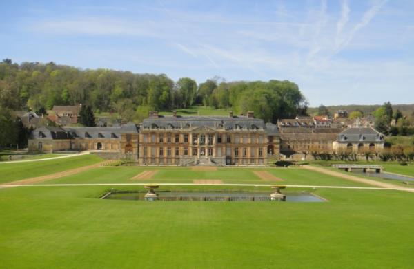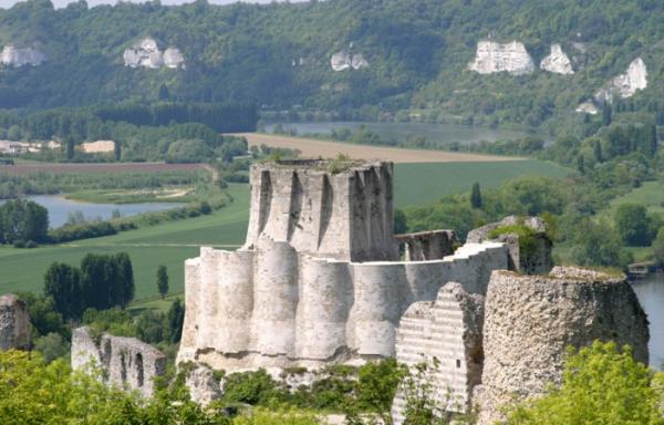 Vue générale de la forteresse de Château-Gaillard, le village des Andelys et la boucle de la Seine (28 mars 2011).