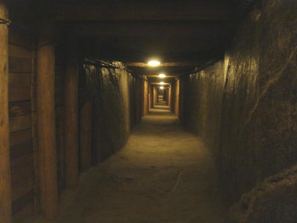 Un couloir (100 mètres sous terre) de la mine de sel de Wieliczka près de Cracovie (Pologne, mai 2010).