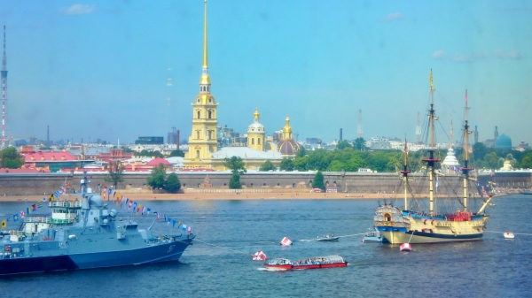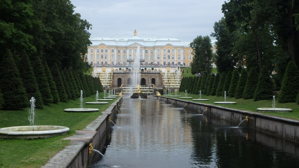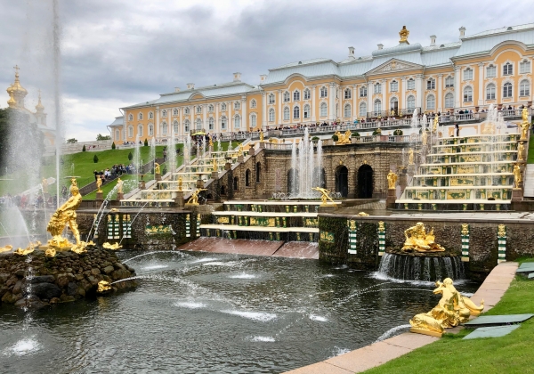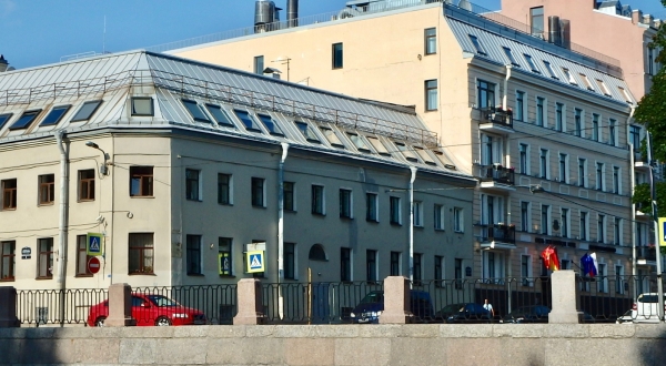 Notre hôtel à St Pétersbourg (Dom Boutique hotel) vu d’un bateau de promenade sur les canaux (ici l’hôtel donne sur la rivière Fontaka)..