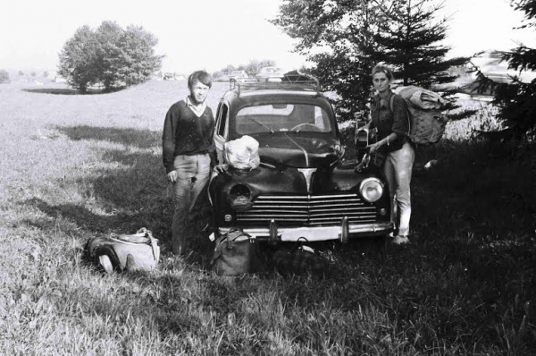 Abandon de ma Peugeot 203 au bord de l’autoroute près de Munich au retour de Grèce, la boite de vitesse ayant explosé (sur la photo Michèle et Jacques Aucouturier, août 1967).