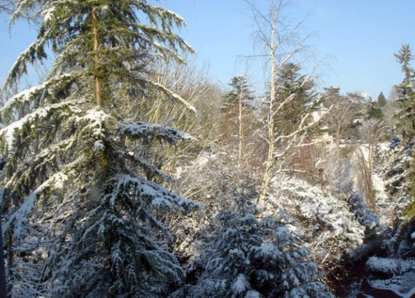 Snowfall at l’Etang la Ville on 7th April 2008 (vue from our lounge).