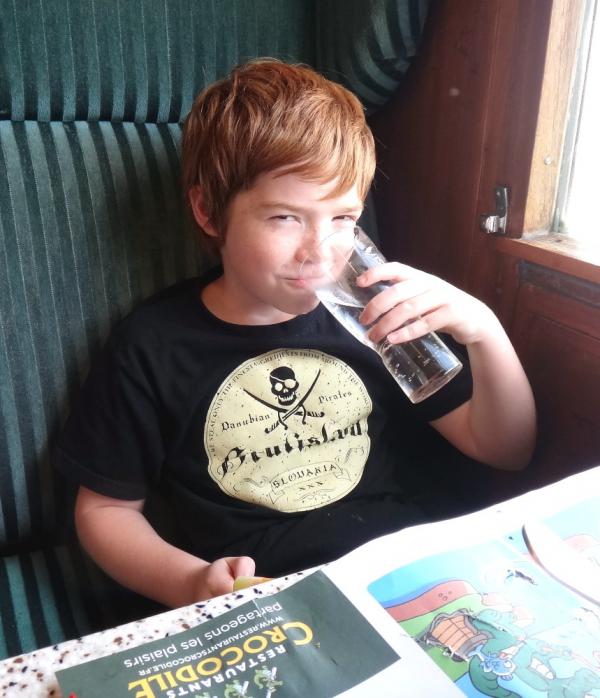 Daniel is drinking fizzy water (restaurant « Crocodile, Creil, 30th August 2013).