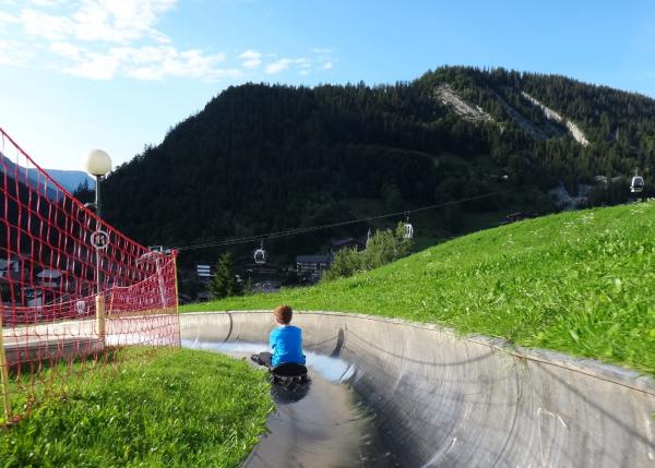 Daniel sledges down the summer toboggan at La Clusaz (9th August 2014).
