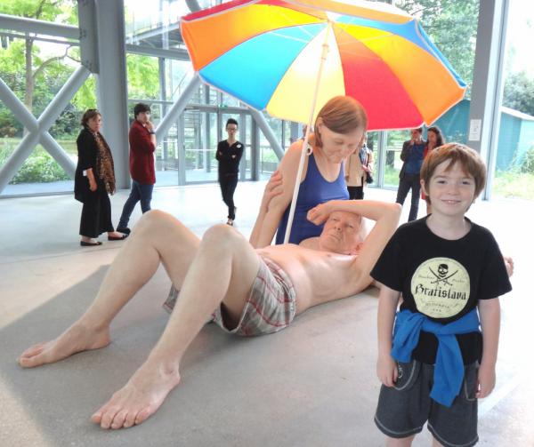 Daniel devant une oeuvre de Ron Mueck à la Fondation Cartier pour l’Art Contemporain (Paris, 27 août 2013).