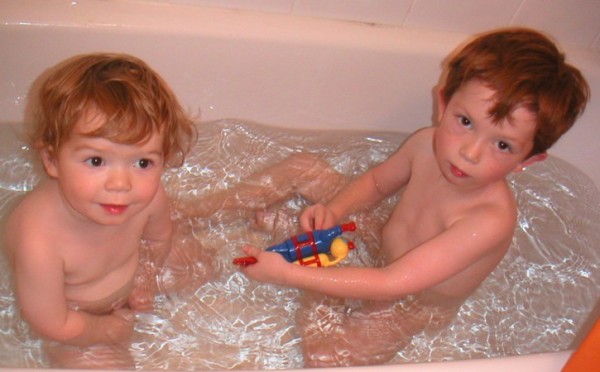 Daniel & Julien in the bath (Islington, October 2005).