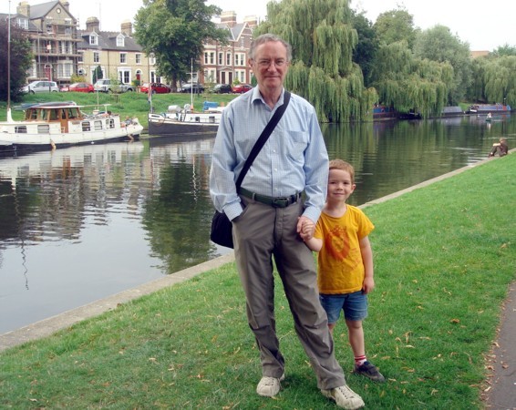 Daniel et son grand-père, le long de la rivière Cam dans le parc du collège de Jésus à Cambridge (août 2008).