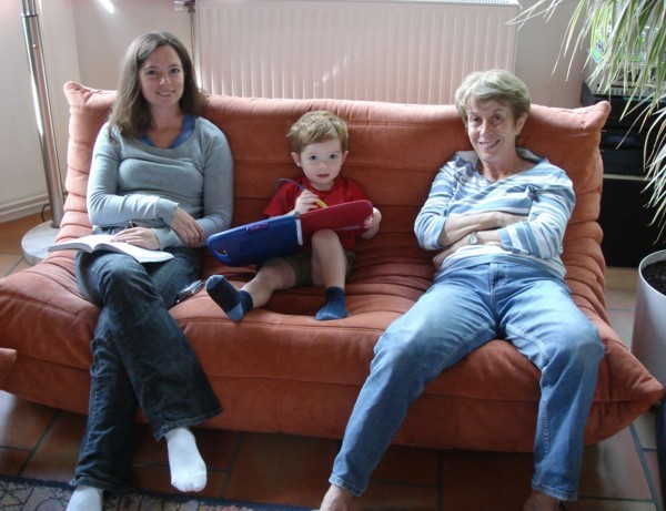 Daniel reads the "LeapPad" with Sonya and Simone (L'Etang la Ville, August 2006).