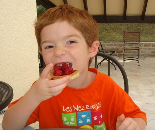 Daniel se délecte en mangeant un gâteau aux framboises (L’Etang la Ville, août 2009).