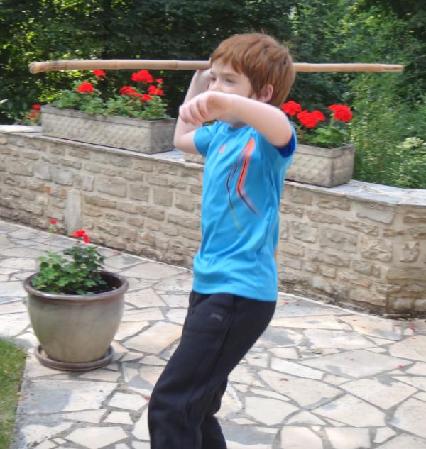 Daniel is practising his javelin throwing (L’Étang la Ville, 28th August 2013).