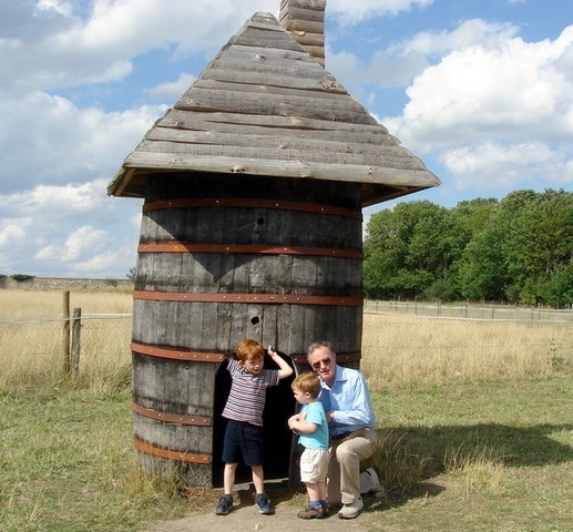 Devant une cabane (tonneau) de la ferme de Gally (St-Cyr-l’Ecole, 2 août 2006).