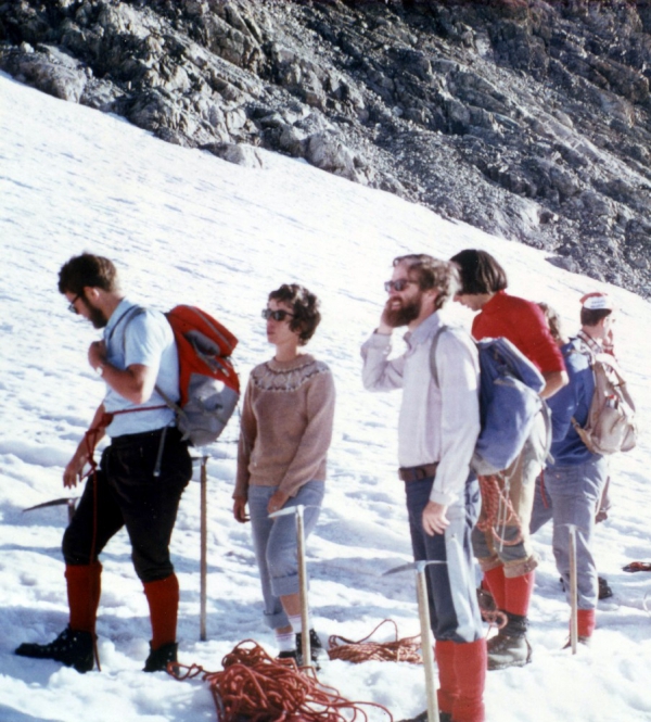 En août 1975 (il y a 40 ans !), Simone et Serge font une course en montagne dans la Vanoise (Glacier Blanc, altitude 3200 mètres). Petite halte de notre cordée sur le Glacier Blanc (Simone & Serge – avec la barbe – au milieu de l’image).