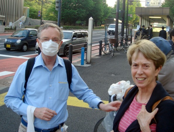 When we arrived in Ypkyo, I had a cold, hence like all Japanese, I put a mask (May 2007) !