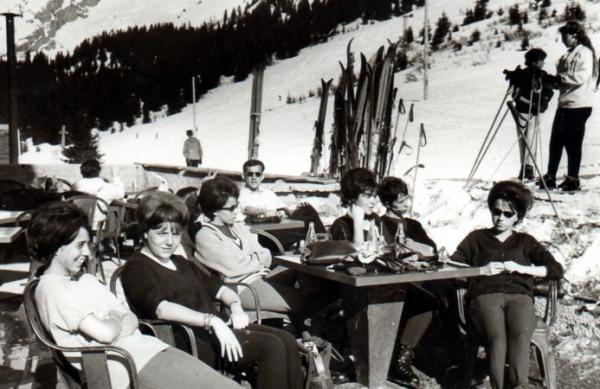 Françoise, (Marie-France, friend of Françoise), Nicole, Martine (friend of Simone), Simone & Noëlle at La Clusaz (French Alps, April 1962).