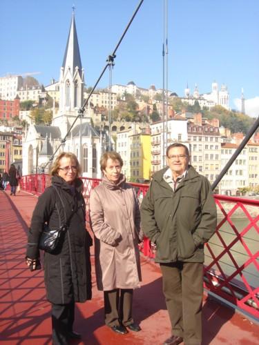 Jean-Louis, Noëlle et Simone sur la passerelle sur la Saône (Lyon, 8 novembre 2009).