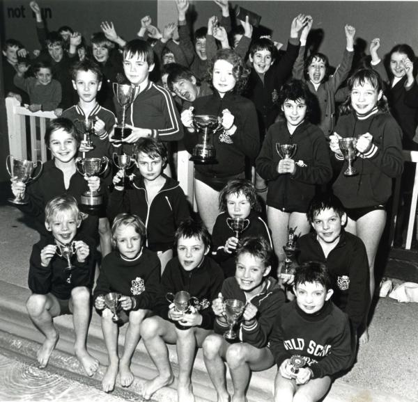 Jean-Yves a remporté une coupe (compétition de natation, 13 mars 1981, Arnold Junior School, Blackpool) !