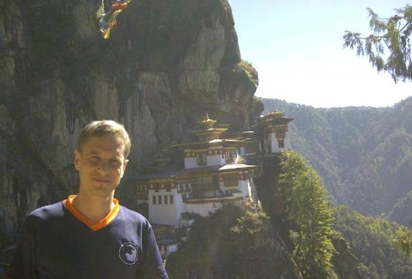Jean-Yves in front of a monastery in Bhutan (9th November 2013).