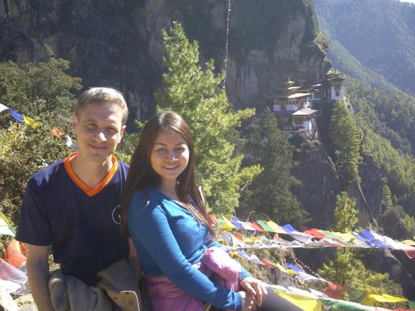 Jean-Yves et Kanda visitent un monastère au Bhutan (9 novembre 2013).