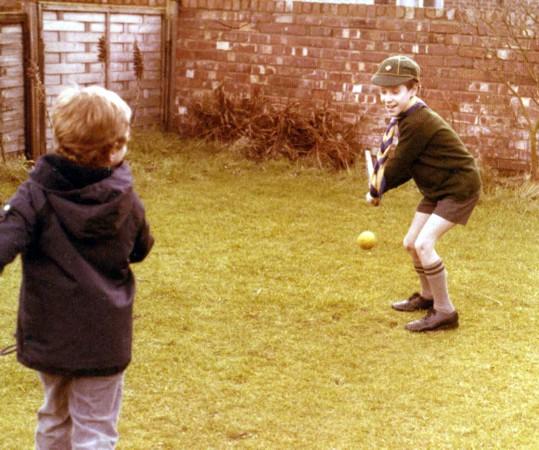 Jean-Yves & Nicolas play cricket in the garden of our house (Ansdell, Lancashire, September 1979).
