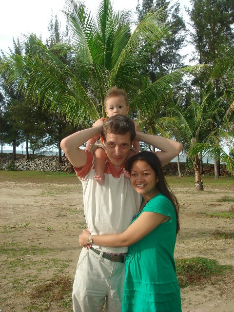 Jean-Yves, Kanda et Vincent sur la presqu’ile de l’hotel « The Empire » a Brunei (Borneo, mars 2008).