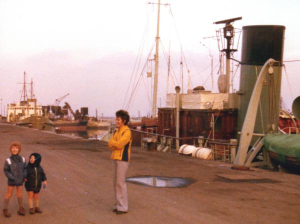 Jean-Yves, Nicolas & Simone visit the Fleetwood harbour (north of Blackpool, winter 1976).