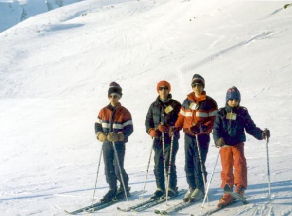 Jean-Yves, Simone, Nicolas and Stéphane ski at « La Rosière » (French Alps, winter 1985).